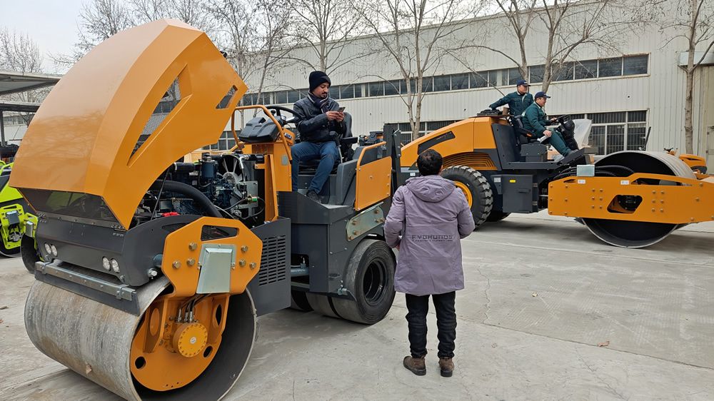 12月24日,某國外客戶2人來我廠參觀考察,在工作人員的陪同下,參觀了我廠生產(chǎn)車間與展廳并試駕小型壓路機(jī),詳細(xì)向業(yè)務(wù)人員了解各個(gè)型號的配置與參數(shù),對我廠生產(chǎn)的壓路機(jī)、移動(dòng)照明車,滑移裝載機(jī)等產(chǎn)品表現(xiàn)出濃厚興趣,初步達(dá)成合作意向
