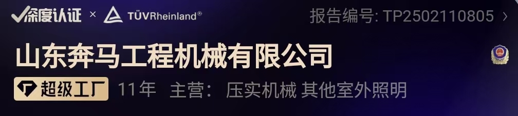 山東奔馬憑借卓越的生產(chǎn)實(shí)力和優(yōu)質(zhì)的產(chǎn)品,榮獲阿里深度認(rèn)證的“超級(jí)工廠”稱號(hào),同時(shí)被百度認(rèn)證為“實(shí)力工廠”,充分彰顯了其在行業(yè)中的領(lǐng)先地位。公司專注于研發(fā)與生產(chǎn)小型壓路機(jī)、移動(dòng)照明車、液壓動(dòng)力站等設(shè)備,以創(chuàng)新技術(shù)和精湛工藝為客戶提供高效、可靠的解決方案。我們誠(chéng)摯邀請(qǐng)各界朋友蒞臨工廠參觀考察,親身體驗(yàn)我們的生產(chǎn)流程與產(chǎn)品性能。山東奔馬將以專業(yè)的態(tài)度和優(yōu)質(zhì)的服務(wù),與您攜手共創(chuàng)美好未來(lái)!歡迎隨時(shí)聯(lián)系,期待與您合作!全國(guó)免費(fèi)服務(wù)電話:400-6537-859